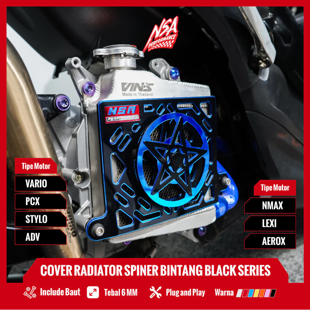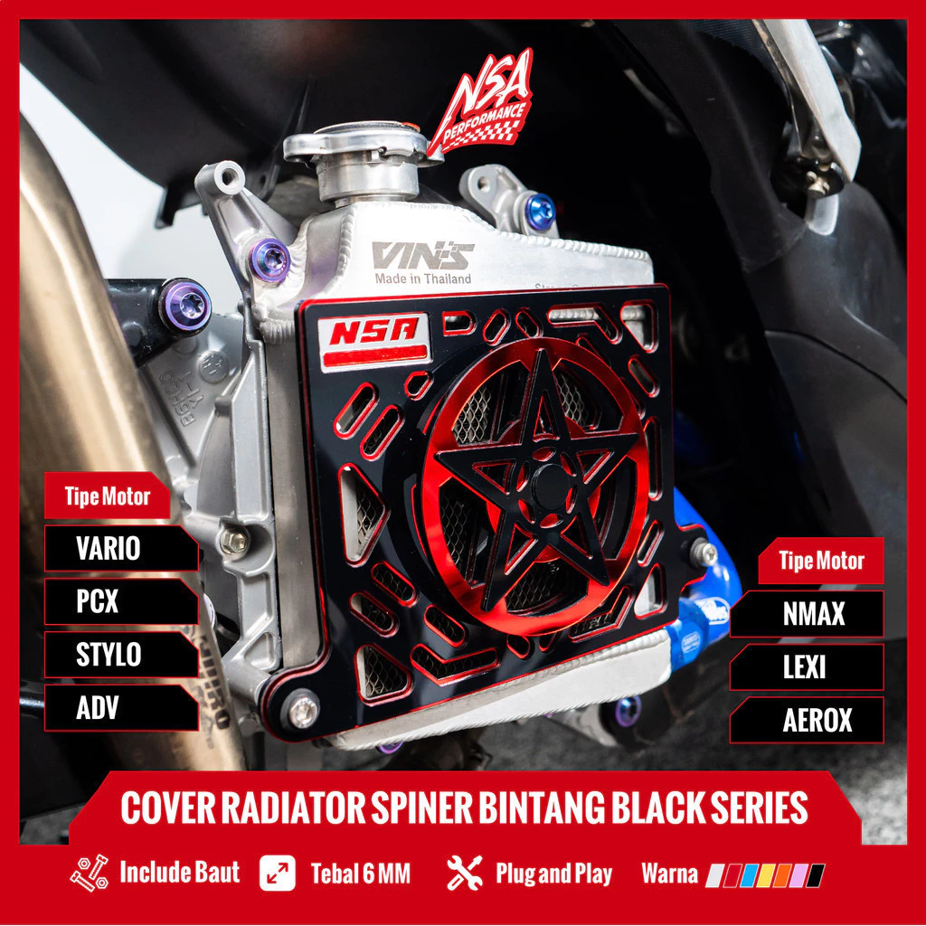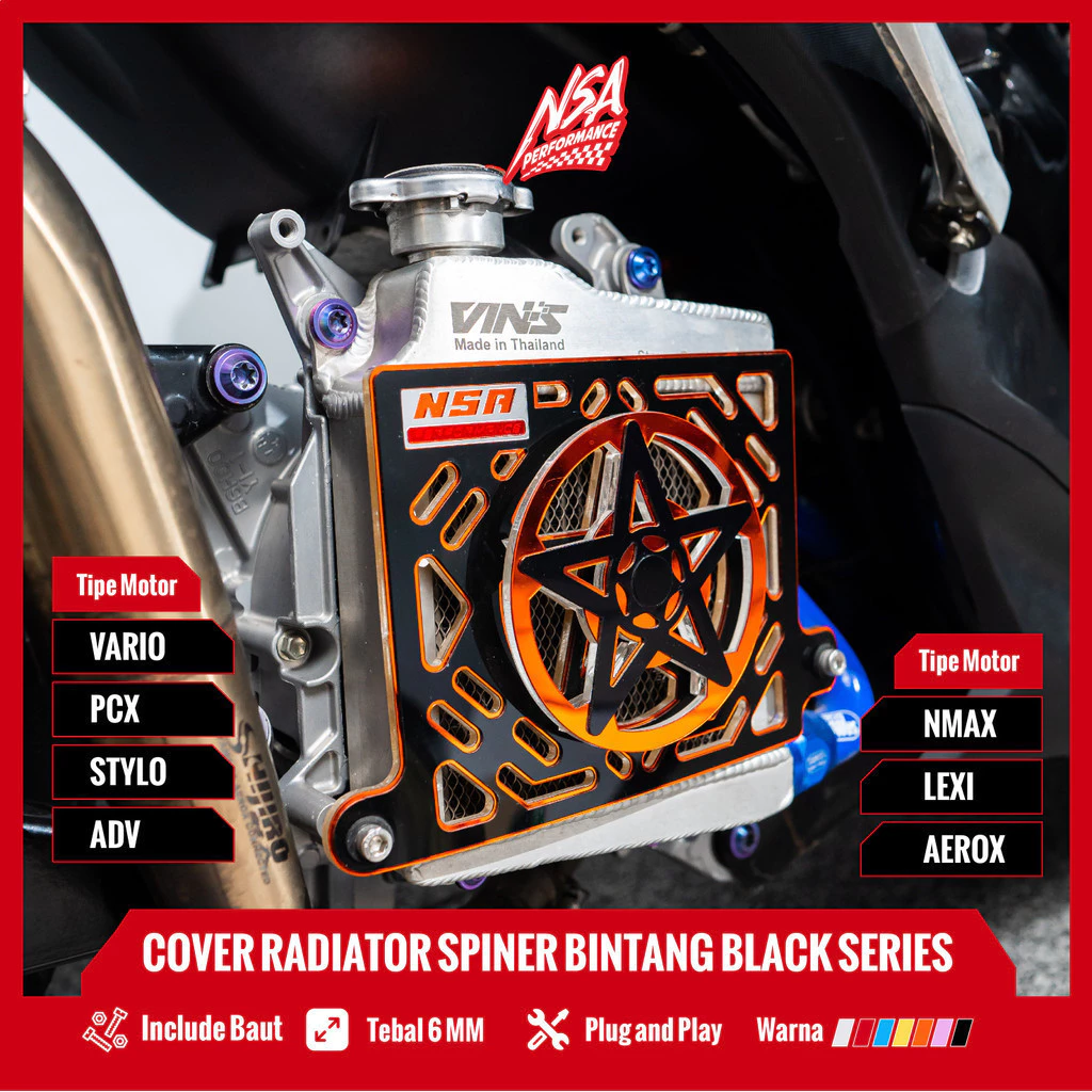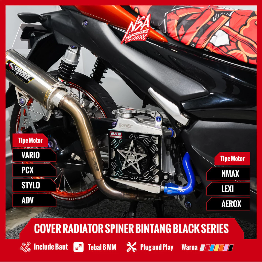 NSA COVER RADIATOR SPINER BINTANG BLACK SERIES VARIO PCX NMAX AEROX ADV LEXI STYLO Tutup Radiator Spinner Bintang Yamaha